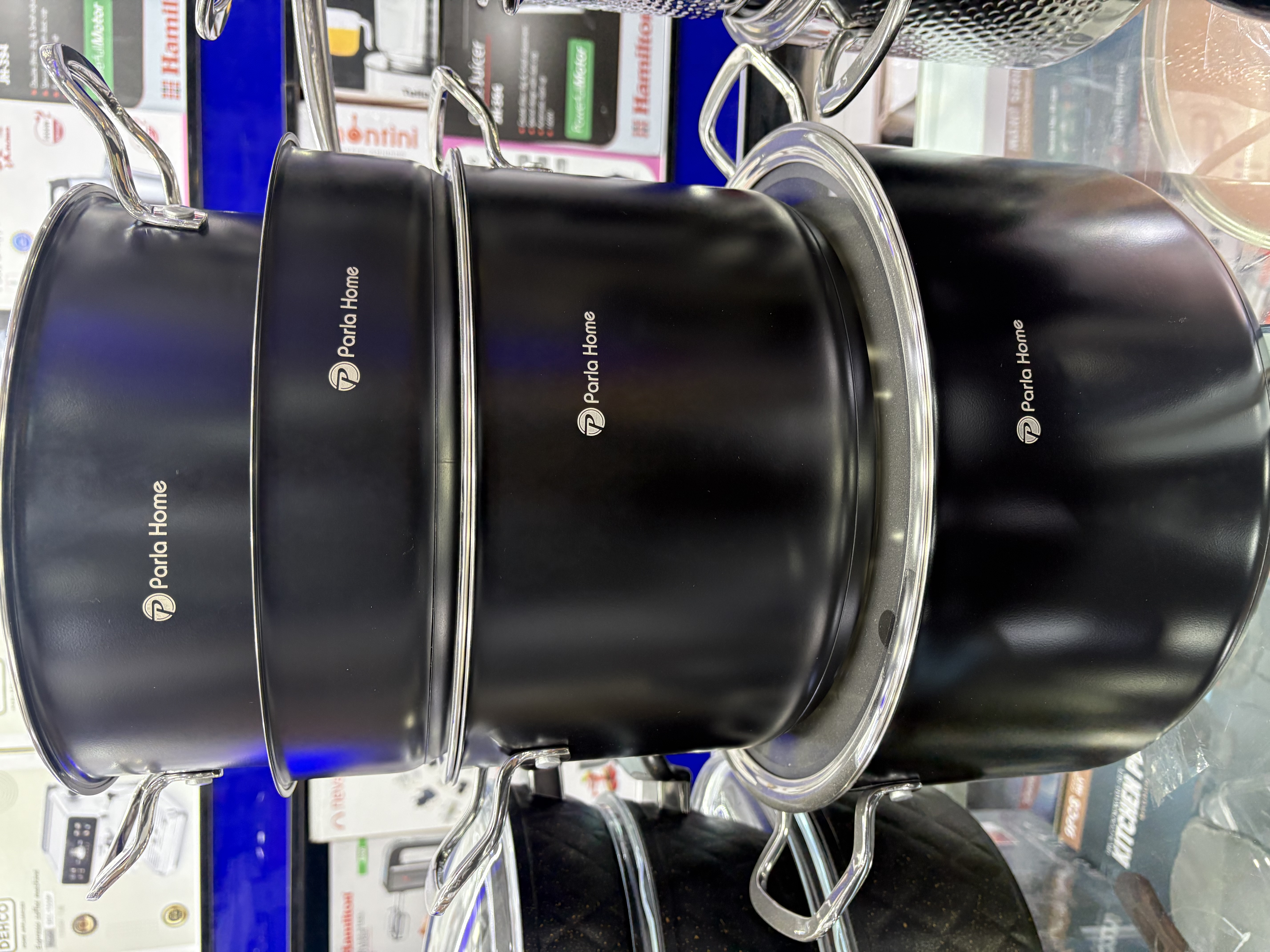 برند Parla Home با سری Maxit، یکی از بهترین گزینهها برای آشپزخانههای مدرن و حرفهای است. این سرویس ۷ تکه با بدنه مشکی مات شیک، جنس استیل ضدزنگ درجه یک و پوشش نچسب Xynflon، تجربهای متفاوت از پخت و پز سالم و آسان ارائه میدهد. مناسب برای استفاده روزانه، جهیزیه عروس یا هدیهای لوکس!